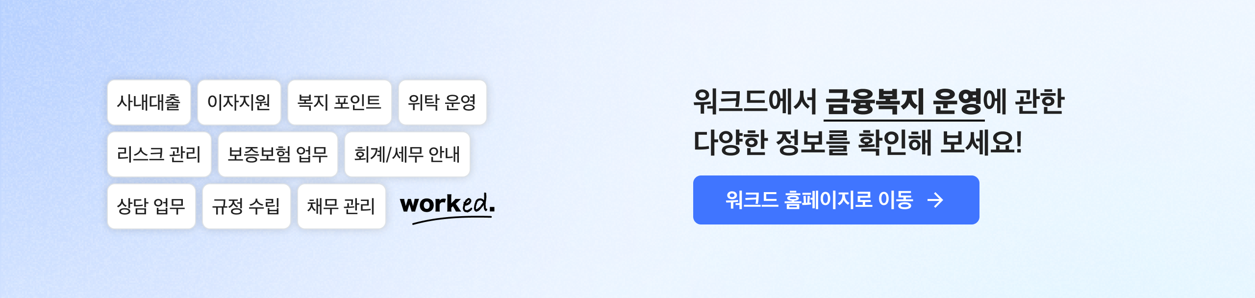복지 도입 과정에는 규정 수립부터 운영까지 여러 절차가 있어 인사 담당자에게 부담이 될 수 있습니다. 워크드는 이러한 복잡한 과정을 간소화하여, 사내대출 같은 복지 제도가 쉽게 도입되고 운영·정착될 수 있도록 큰 도움을 주는 것 같습니다.