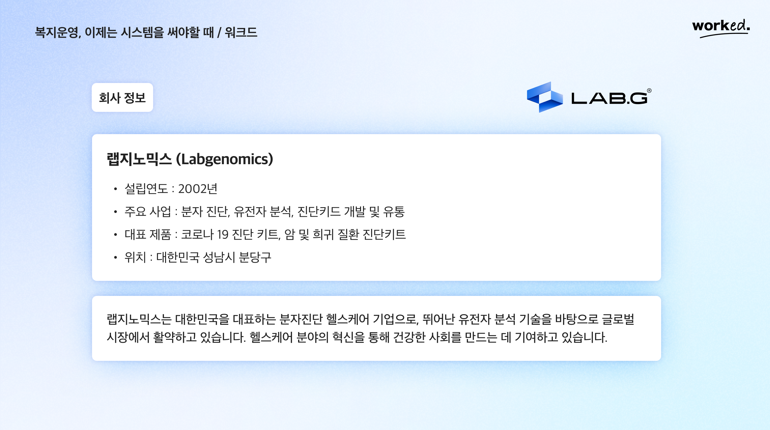 첫 번째 워크드 인사이드는 랩지노믹스 정승철 HR팀장님과 함께합니다.