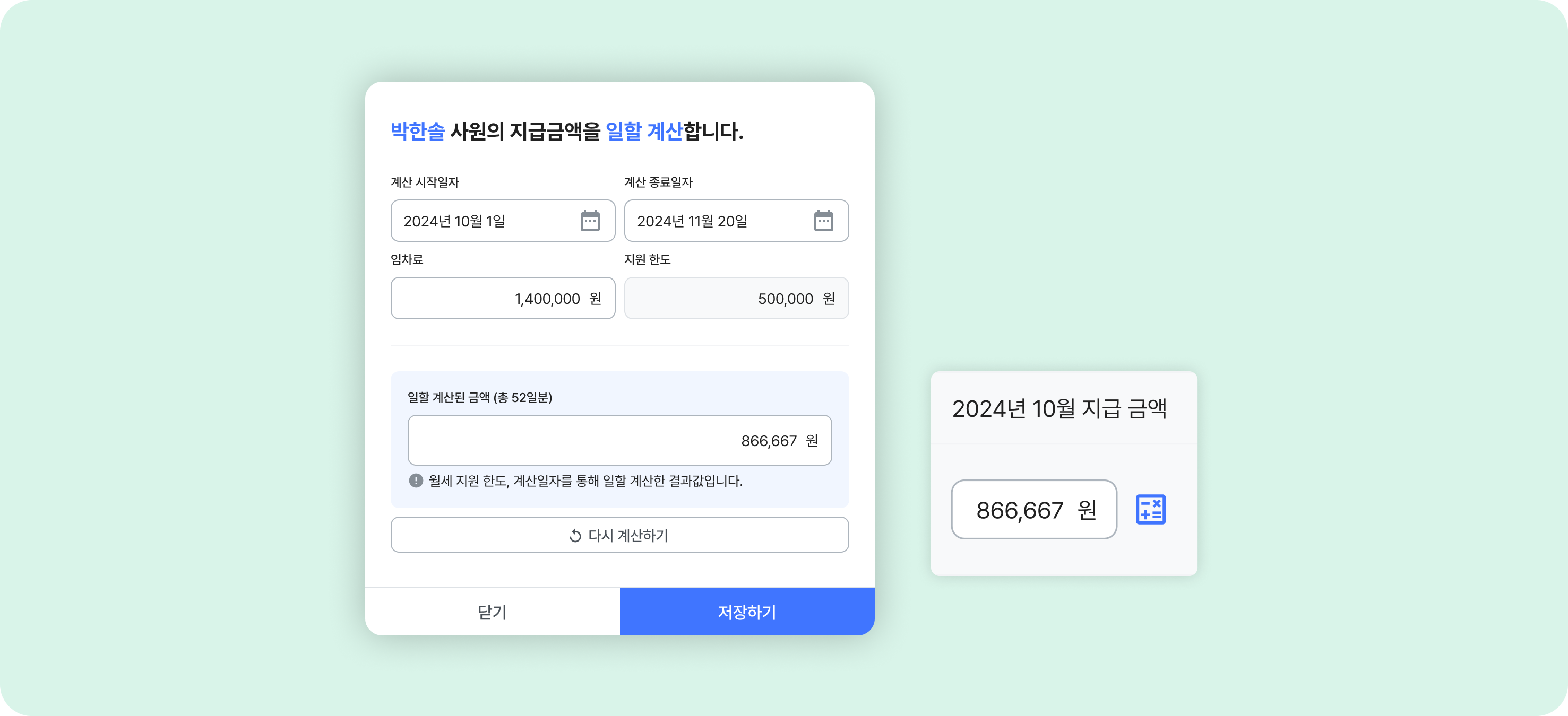 관리자는 월세 지급 시 계약 기간을 바탕으로 지급 금액을 자동으로 일할 계산할 수 있게 되었습니다.