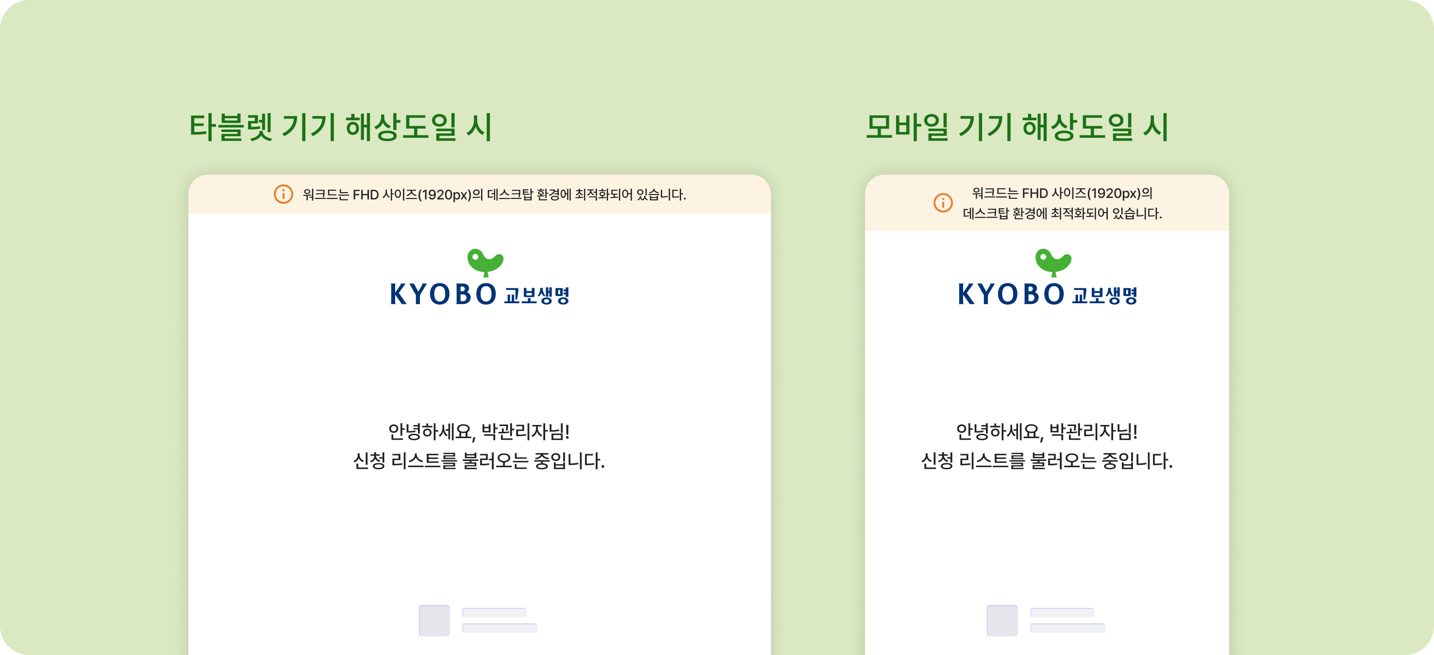 관리자는 사용하는 화면 사이즈에 따라 UI가 자동으로 최적화되며, 화면 크기가 작아져 작업이 불편할 경우 적절한 안내 문구를 확인할 수 있습니다.