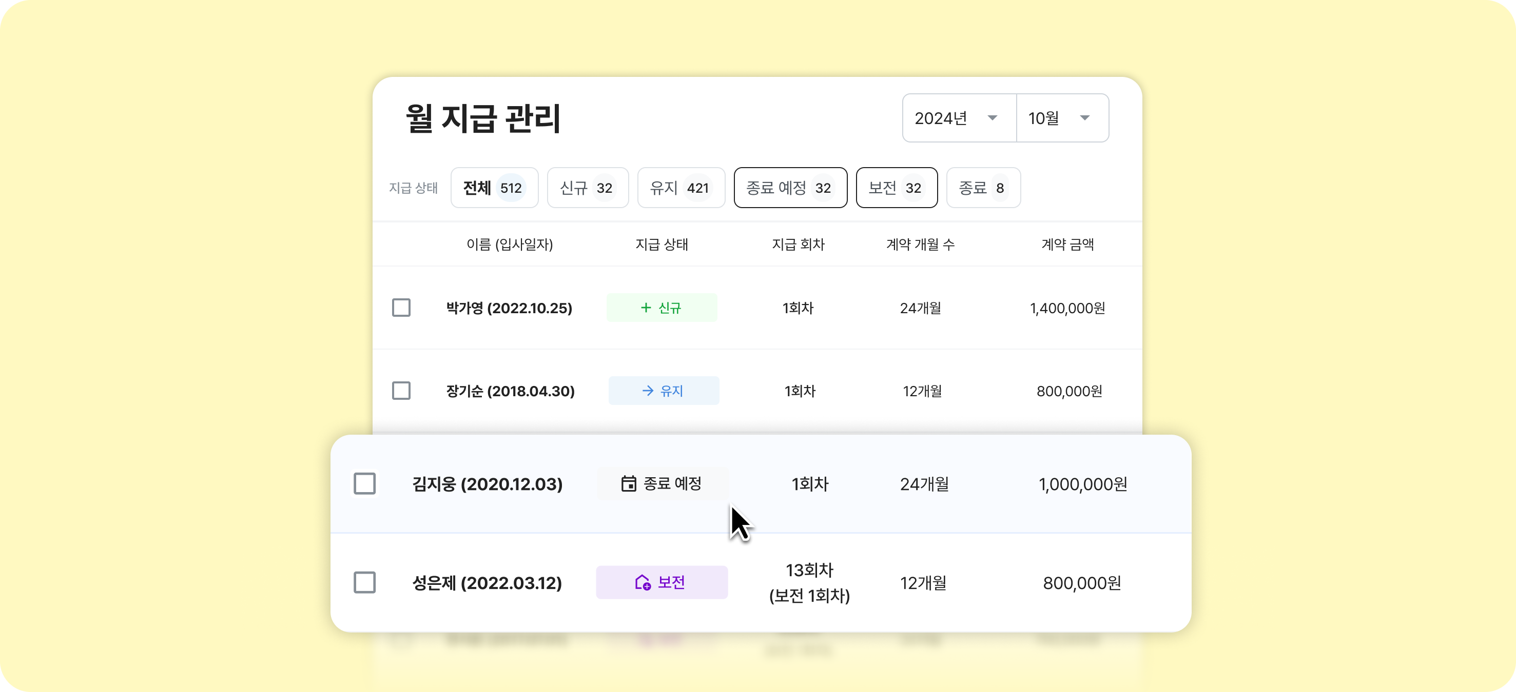 월지급관리 메뉴에서 기존 “계약 상태”가 “지급 상태”로 명칭이 변경되었습니다.