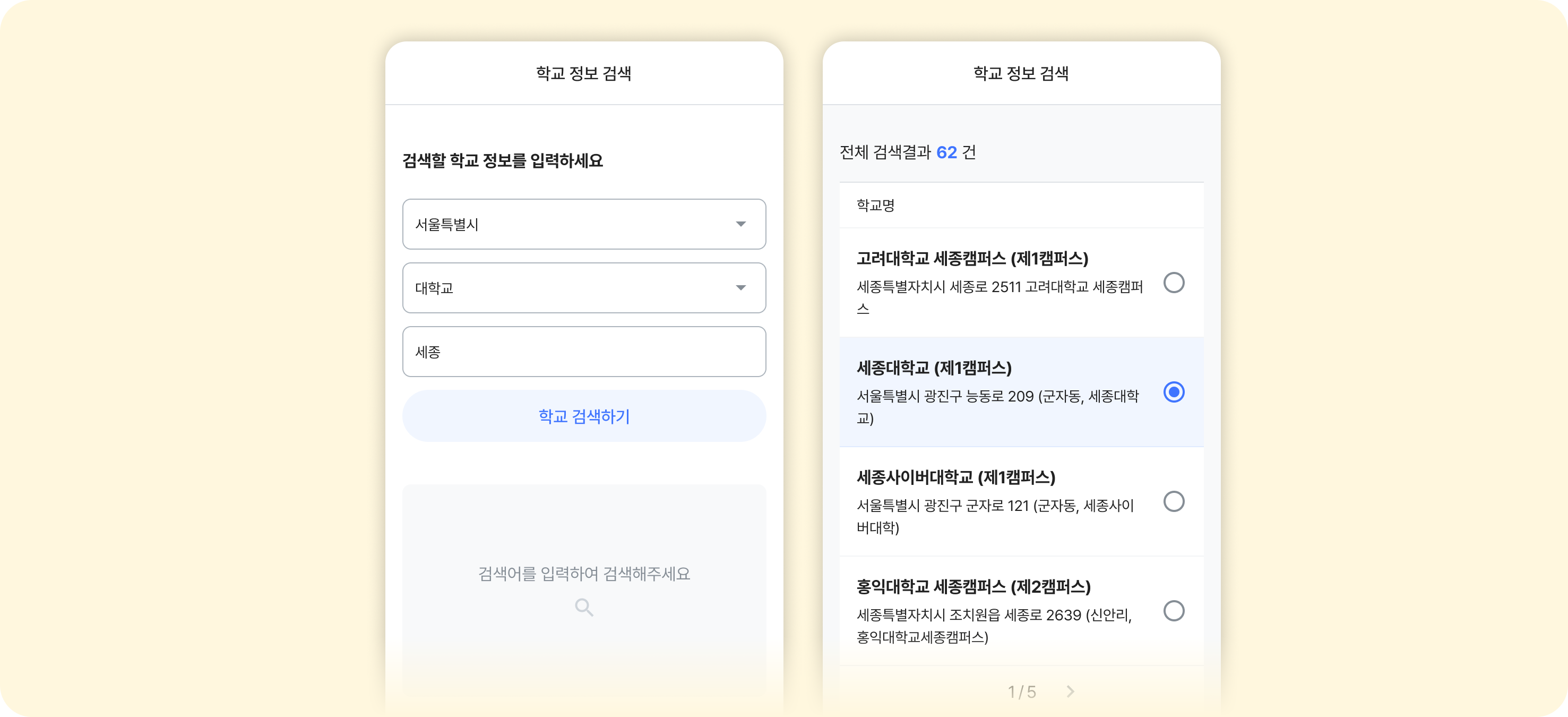 1. 국내 교육기관 검색이 가능해졌습니다.