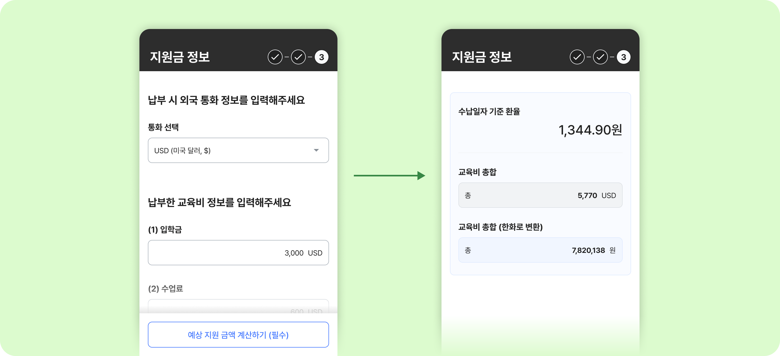 2. 해외 학교 교육비에 대한 환율 계산 기능이 추가되었습니다.
