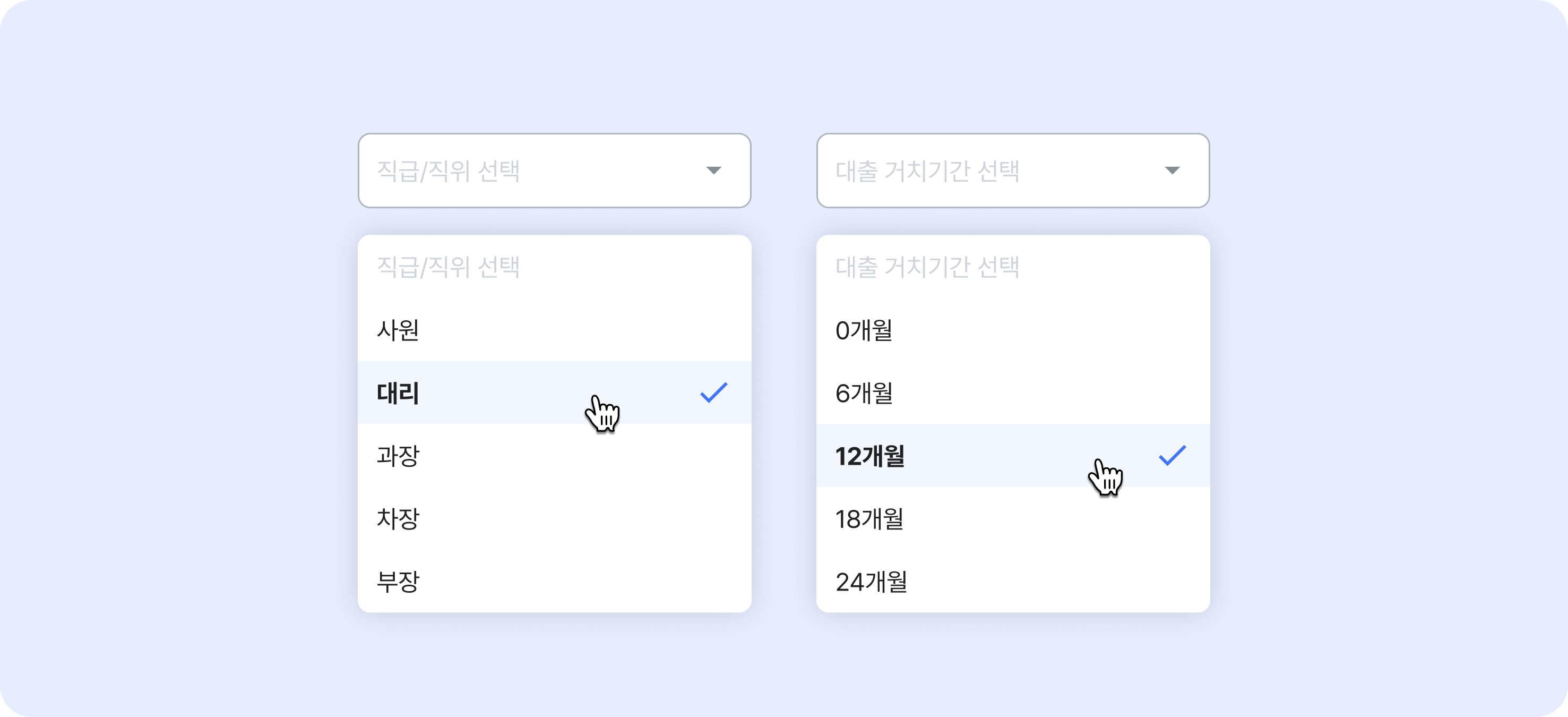 사내대출 신청 과정에서, 회사별로 설정된 직급과 거치기간 정보를 기준으로 근로자가 직접 항목을 선택할 수 있는 기능이 새롭게 추가되었습니다.