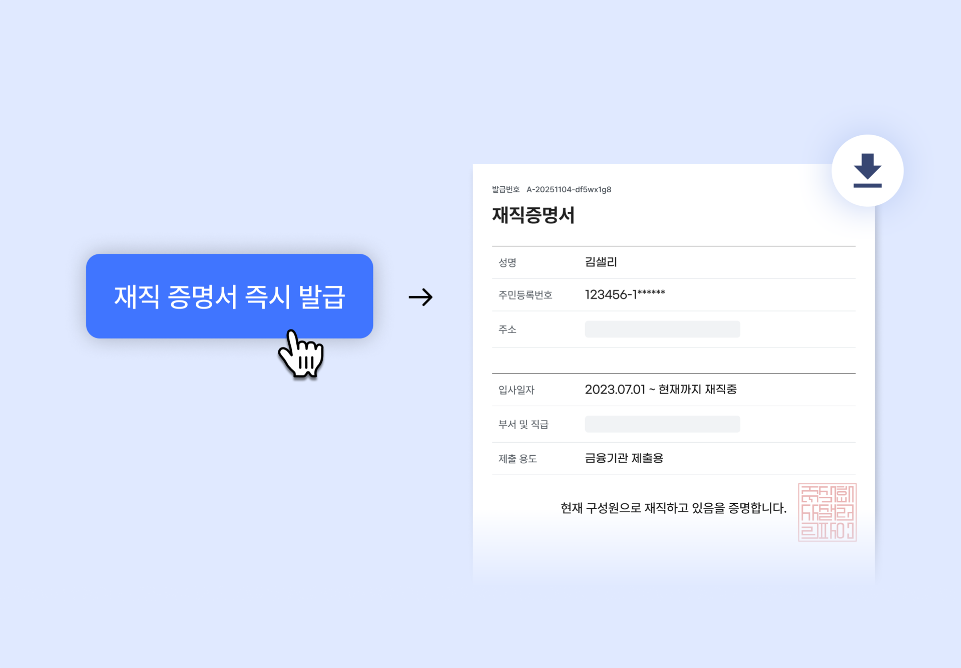 워크드가 제공하는 재직증명서 자동 발급 시스템을 무료로 사용해 보세요.