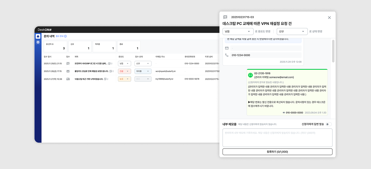 2. [데스크온] 티켓 접수 방법에 따라 답변을 회신할 수 있습니다.