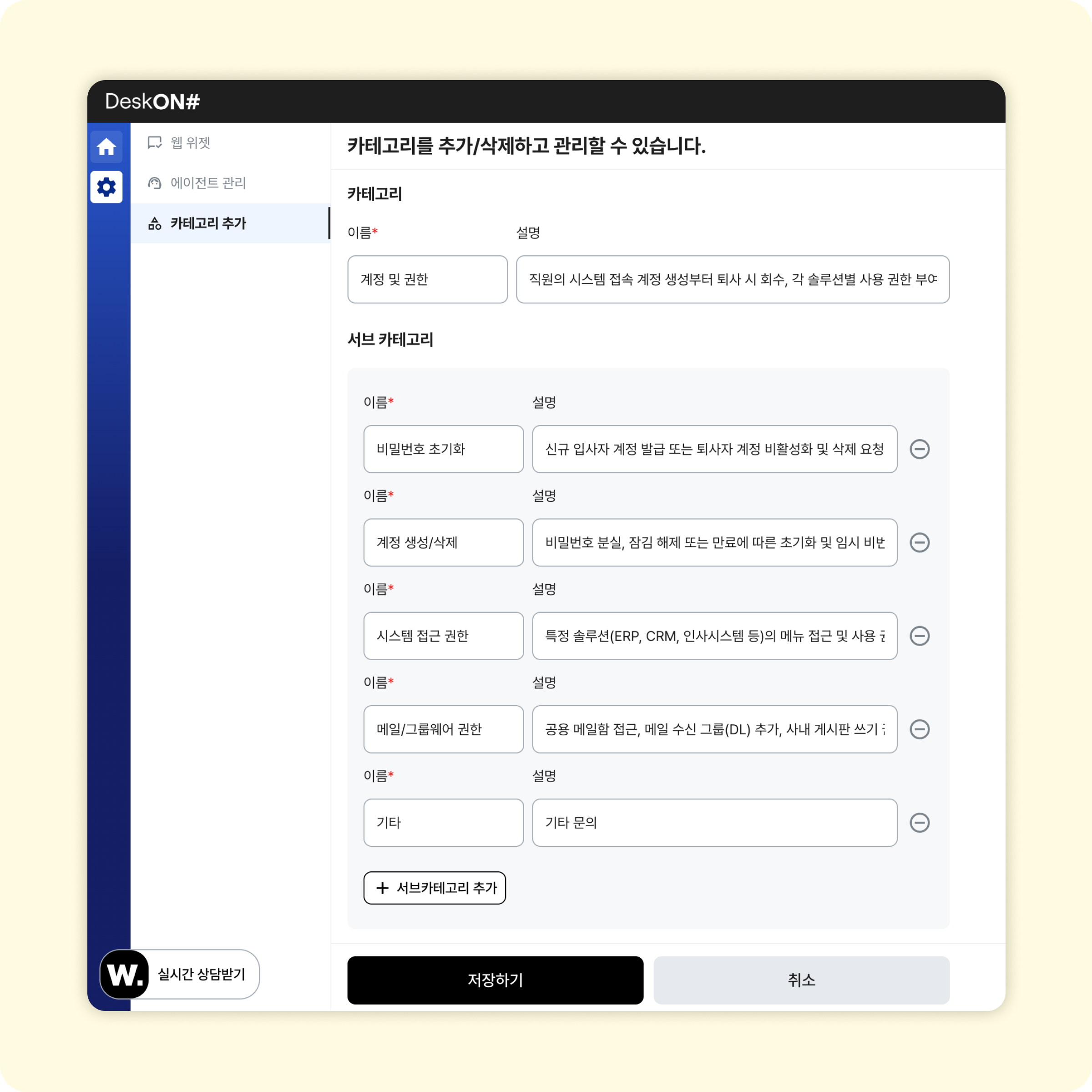 2. [데스크온] 카테고리로 문의를 체계적으로 분류할 수 있습니다.