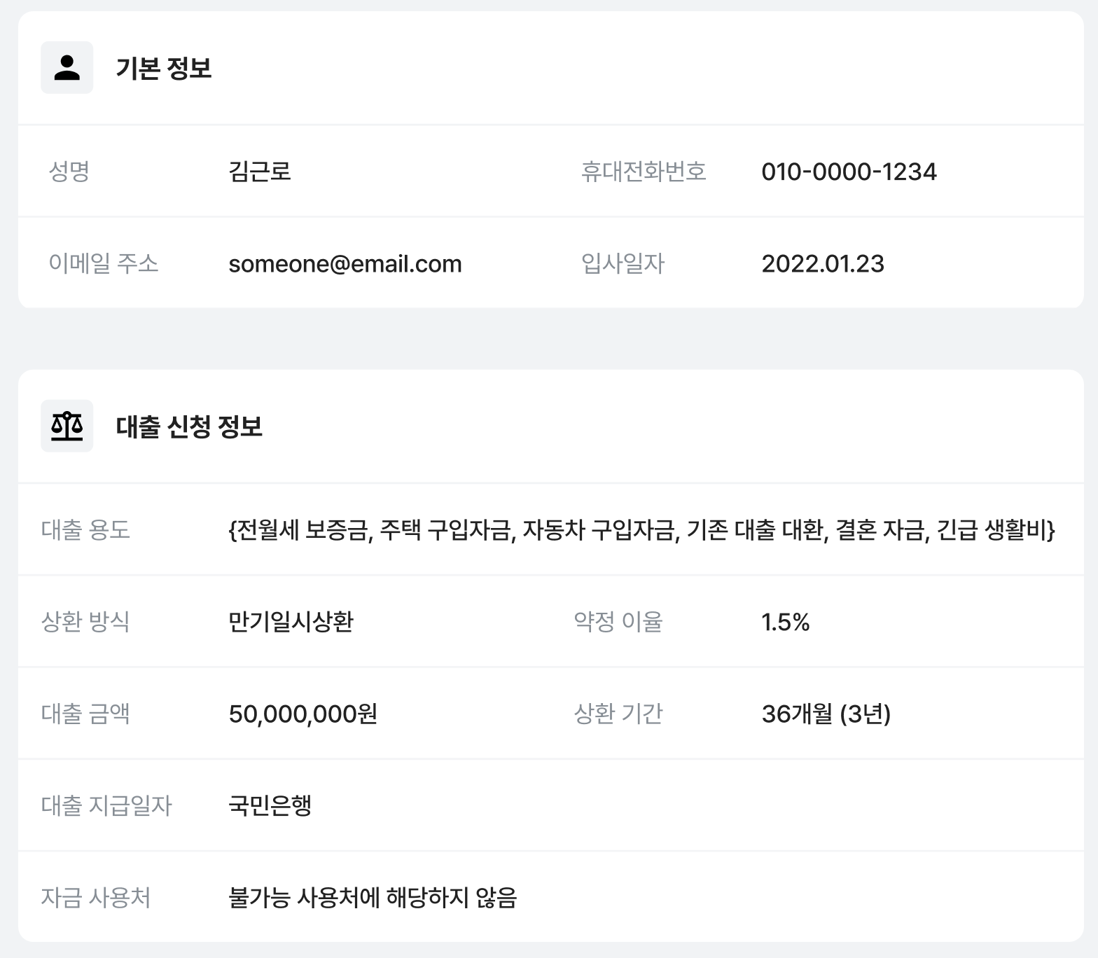 직원의 사내 대출 신청