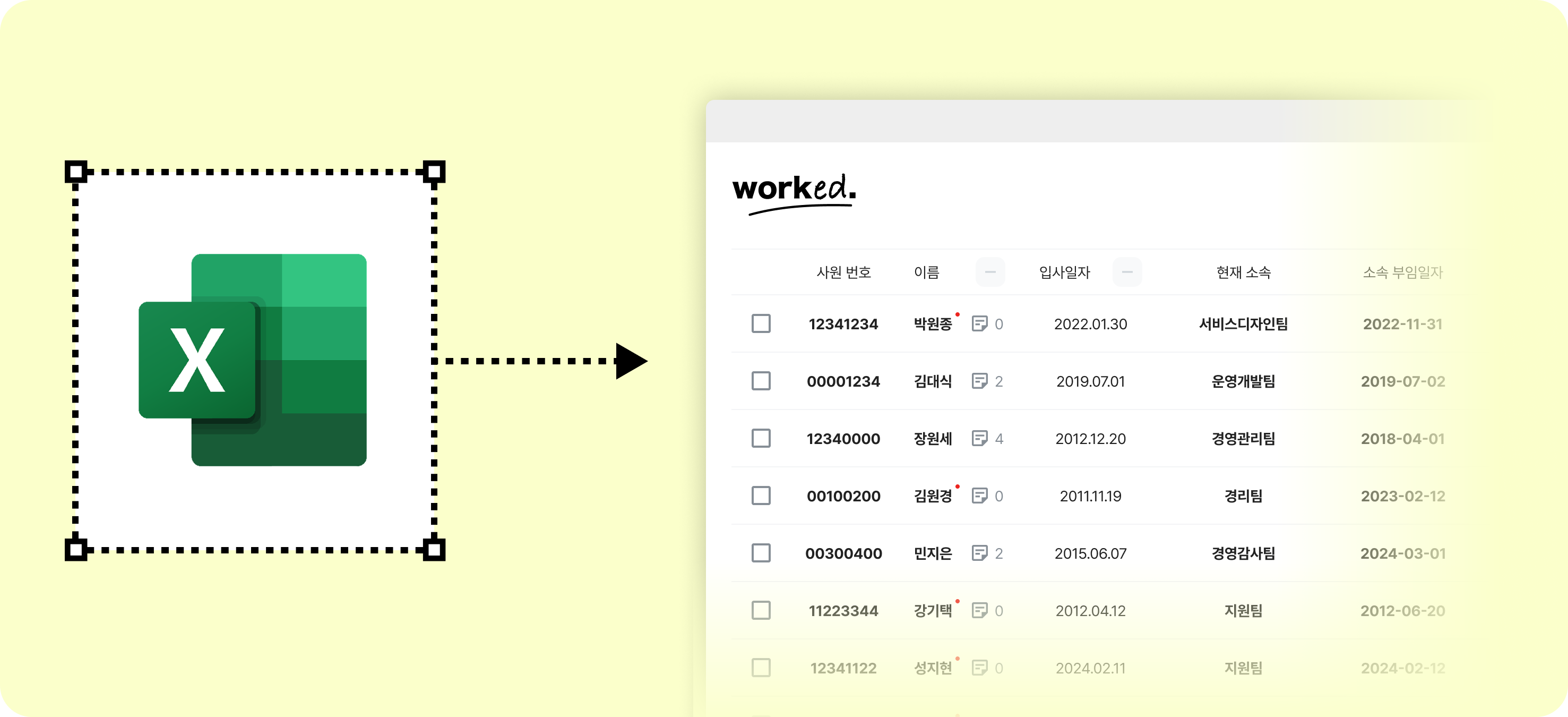 엑셀로 수기 관리되던 500명의 월세 지원 데이터를 워크드 서비스로 마이그레이션했습니다.