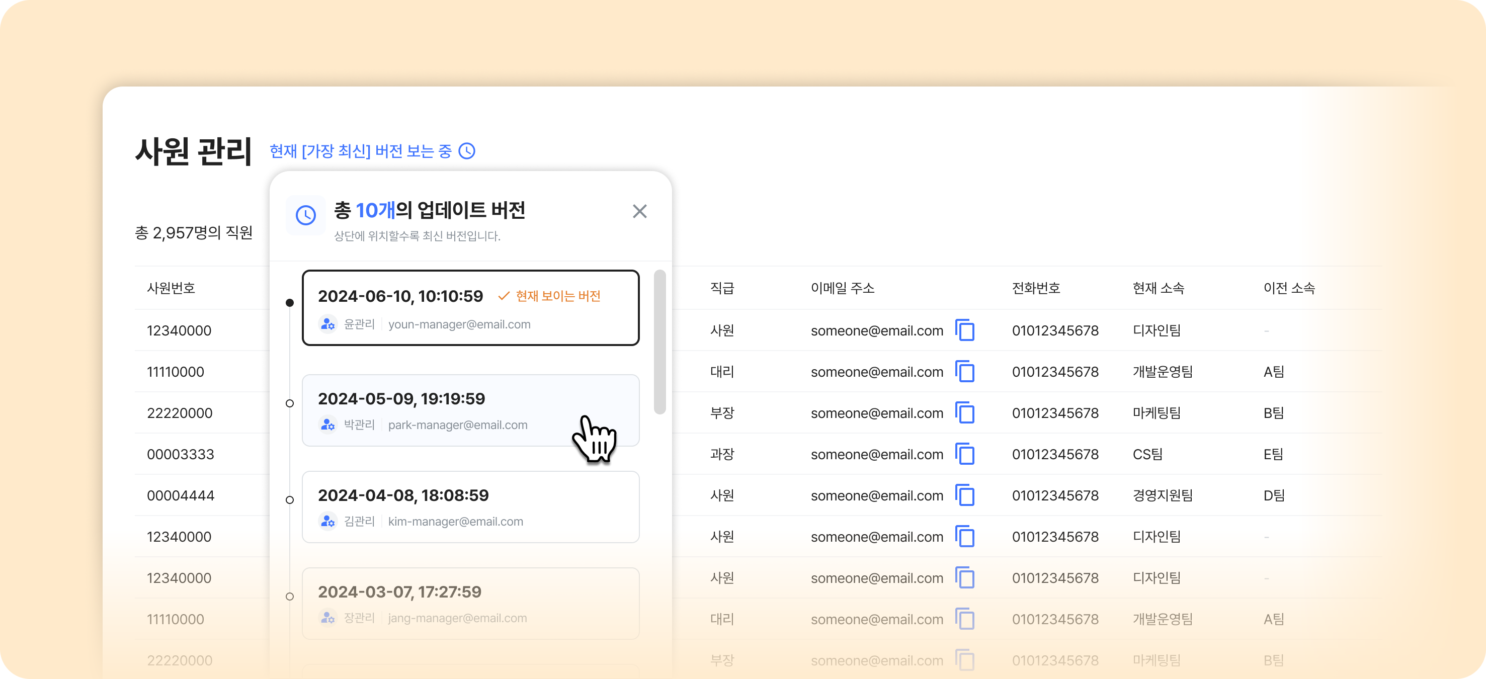 3. 사원 데이터 버전관리 기능이 추가되었습니다.